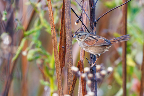 I made two separate trips down to Goose Pond on successive weekends. Neither time was overly successful. It seems that species are moving a week to two weeks later than usual. With sparrows, it did not get cold enough to really force a mass movement. Whereas there usually seems to be be hundreds of Swamp Sparrows at Goose Pond this time of year, there only seemed to be around a hundred. I had a decent number of Lincoln's Sparrow during my visits, but I did not have any White-crowned. Of my true targets, I only had one Nelson's Sparrow on my first visit. Unfortunately, much like the Lincoln's, it did not have much interest in having its picture taken. Sparrows... right?