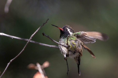 The next morning, there was no playing around. We got up early and went to the Berylline spot, first. We got there at sunrise, which does not mean much in a canyon. It did mean we were successful, though. We did not have to wait long; although it felt long. Within 40 minutes or so, the bird put in two extended appearances. I could not have been more relieved. Lifer number 3 for me and a lifer for Jeff, too. I could not resist a Violet-crowned shot, again, while waiting.