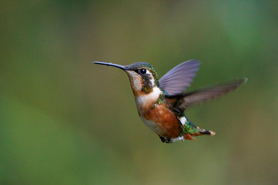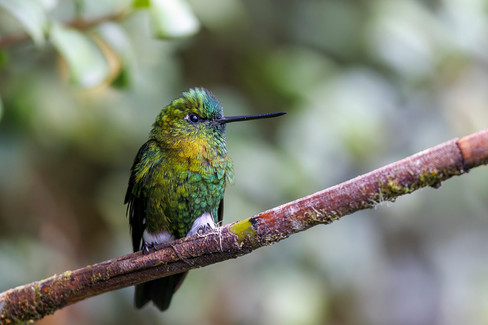 We were supposed to have left. The grounds were closed to visitors, but we were well into our second "15 minutes". We had great light, and the mountain-tanagers were coming back, again. I turned and looked into the bush right behind me and yelled out, "thornbill!" A female was feeding so close behind me, I had to backup to shoot her. I got one good shot out of it.