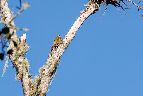 The forest here, is thick, and the birding is difficult. That Byron (or any other guides we have every birded with in the South American rain forests) ever spot anything is a bit of a miracle. Needless to say, photography is near impossible at times. A lot of times you are looking at birds in pieces. You are seeing some wings and a bit of a tail from behind a leaf. When the bird moves, you may see some of the eye and part of the head from behind another leaf. Eventually, you (hopefully) get enough views that you recognize it. While you are piecing this together, the guide has long ago provided an ID and moved on, but I like to look at the bird and pull together fieldmarks. I study ahead of time. While I am far from an expert (bordering more on outright dunce by guide standards), I at least have an impression of what most of the birds look like when given a name. Looking at the bird, I can usually piece together a few fieldmarks. Sometimes, I have to take the ID on blind faith (looking at you Euler's Flycatcher). All of this is just a long-winded way of saying I miss birds at times, and there are very few photos of what I did see.