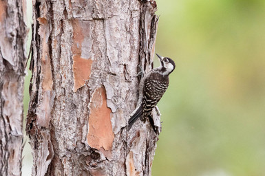 The day was really looking up, and it was overcast; so, I could still shoot in the middle of the day. I headed up to Babcock-Webb to search for Red-cockaded Woodpeckers. I didn't think I stood much of a chance. I pulled in and drove back to the spot where I'd had them before. I stopped the car and rolled down the window to listen. A couple minutes later, a family of four flew in and started working through the pine trees. I got really lucky. Incidentally, I think this is one of the most beautiful places in Florida. I love the mix of pine and palmetto, here.
