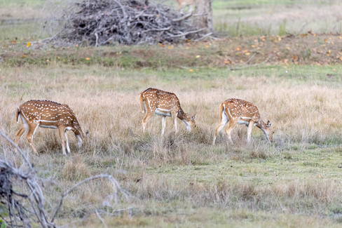 We caught several birds on their morning commute; ubering about on the Spotted Deer. Ashy Drongo in one place.