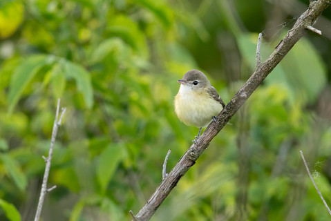Goose Pond is one of my favorite places to photograph grassland species. I mainly do this by car. And I only ever do it at sunrise. I was up at 4:30 AM on Saturday. It is a two hour drive to GP from my house, and I-70 is closed; so, it takes a little longer right now. Turns out there is a second road closure right outside Linton, but I did not know to plan for that one. I arrive at GP just as the sun was stretching over the horizon. I stopped to pull out my camera and roll down the windows. I was immediately greeted with the backwards-sounding call of a Bell's Vireo. I hear a lot of Bell's Vireo that morning. It's good that they are doing so well. What I did not hear much of was Henslow's Sparrow. In my time there, I only heard one. In general, the place was fairly alive with song. I basically run a Z-shaped route through the area that covers the GP 9/10/11 road, down the main highway, and then over the the "concrete bridge" area where the Least Terns (of which I did not spot any in the air, at the time I was there) are viewed. Running this route twice between 6:30 and 11:20 netted me all my expected species. I even got pics of most of my targets. Missed pics included Northern Bobwhite and Common Yellowthroat. I had plenty of the latter, but they are not much for sitting still or sitting in the open.