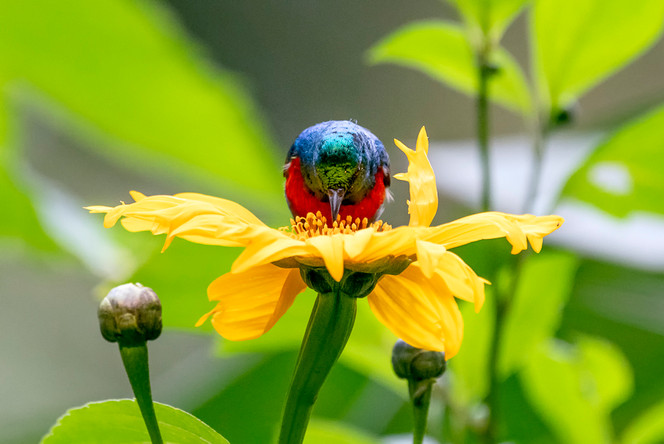 So, on to something nicer! Like sunbirds! There was a large bottlebrush tree near the visitor's center, and there was a constant stream of sunbirds in and out of it.