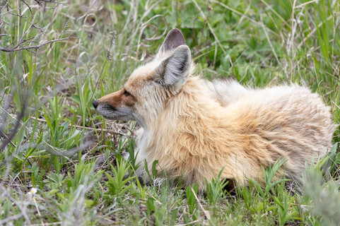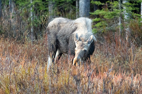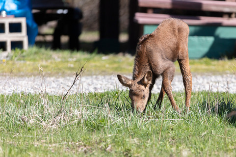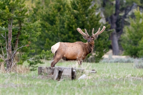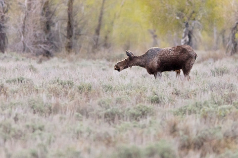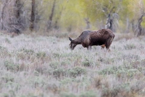 Moose was a lifer for us, and we were eager to see one. It's probably not an uncommon experience, but our first view of one was an individual, in Tetons NP, buried in a thicket of willow in a creek bed. You could make out it's outline and some fur. It laid there, and that was pretty much it. Things got better after that. We did return the next day and found a couple more out in the open. Just outside Yellowstone, we wandered into Silver Gate and had a pair of baby Moose feeding on someone's lawn. They did not stay long and moved off behind some houses. Not far from there, in Yellowstone, we had a lone Moose calmly feeding in the creek near Warm Creek. Sadly, the next morning, there was a dead moose in the same area. Rumor was that it had been hit by a car, but we also heard that it'd died giving birth. We only saw one moose with any size of antlers. It was about a mile away, though, and photos were poor, at best. Moose are massive and gangly animals, and we were happy to finally see some.