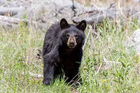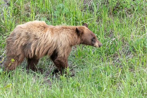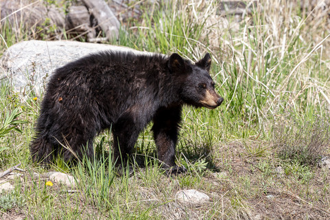 As one woman's shirt aptly put it, most people are here to see the bears. There is so much more than just bears here. We missed out on some of the smaller mammals. We did not see any badger nor porcupine; although we met people who had seen both. We did see Moose and Elk. We had distant Mountain Goats and close Big Horn Sheep. Pronghorn and Black-tailed Deer roamed the area. The iconic Bison and their little cinnamon-colored calves roamed the ranges and the roads. Gray Wolf stalked the hills. Coyote and Red Fox slinked through the grass. In the grass, the chirping chatter of Uinta Ground-Squirrels could be heard. Least and Uinta Chipmunks scurried about, and a few fat Yellow-bellied Marmot lounged on the rocks. Even in early June, Spring was just arriving in Yellowstone. We had hoped to add a few butterflies to our list, but we saw few. And, yes, we did see some bears.