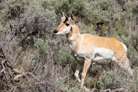 Not an antelope; although it is commonly called one. It's the only surviving member in it's family; its closest relatives are the giraffe and okapi (an animal we both hope to see some day). Pronghorn are pretty fascinating looking animals.