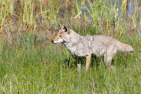 The much-maligned coyote. We saw several. Most were pretty shy. On our last day, as we were travelling back to Bozeman, we lucked across a den near the highway. Of course, I had my camera packed away. I quickly dug it out while Carmen snapped away, but the pack of four pups had pretty much spread out by then. I snapped a few shots and enjoyed the scene. We were parked on the edge of the interstate, though, and we could not stay long.
